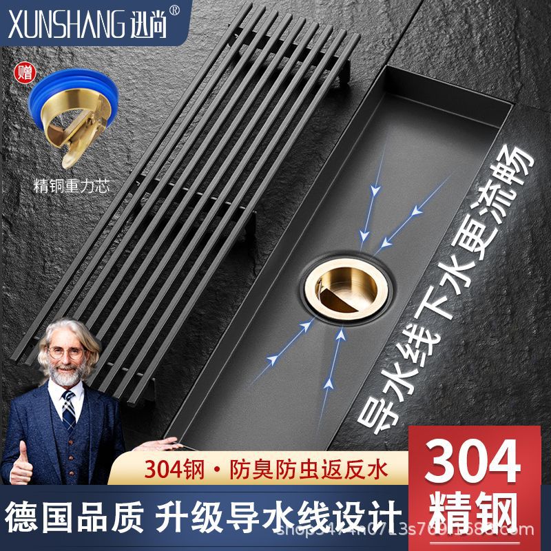 304 garis pemandu Air baja tahan karat saluran pembuangan lantai panjang kamar mandi kamar mandi pemindahan besar anti-serangga deodoran inti tembaga drainase lantai