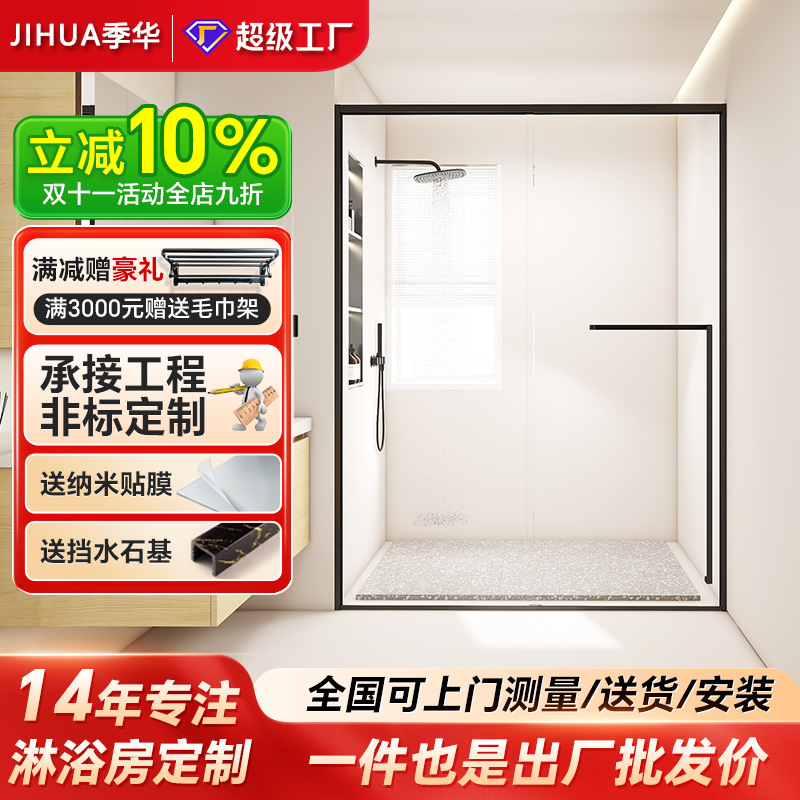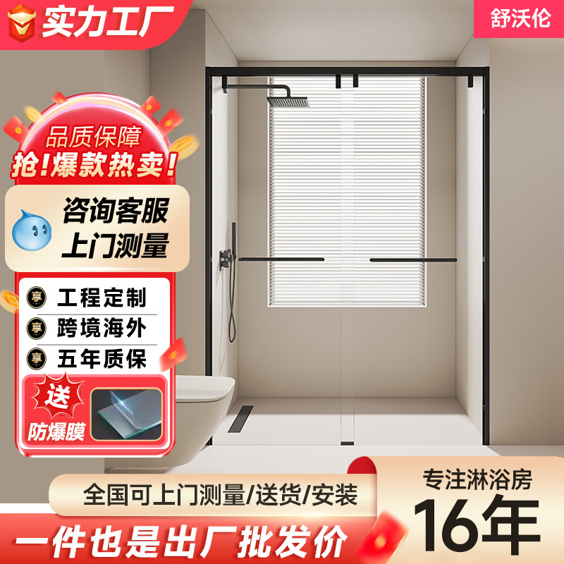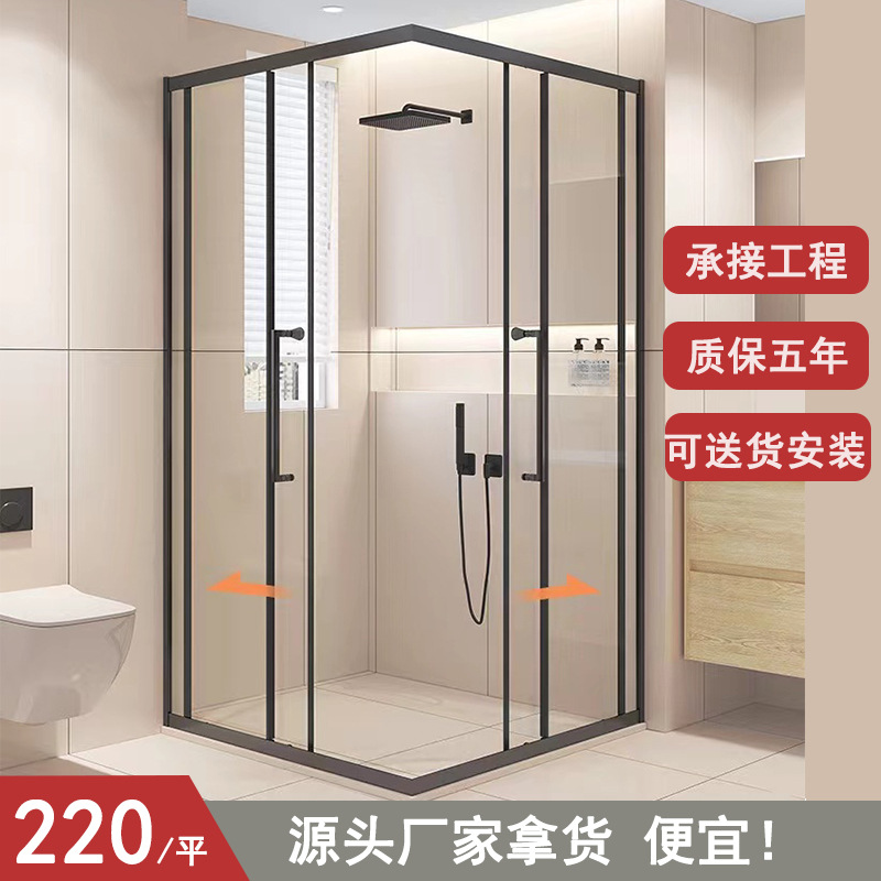 Film partisi kamar mandi pintu kaca satu bentuk, kamar mandi tanpa bingkai, layar mandi kamar mandi rumah tangga basah dan kering sederhana