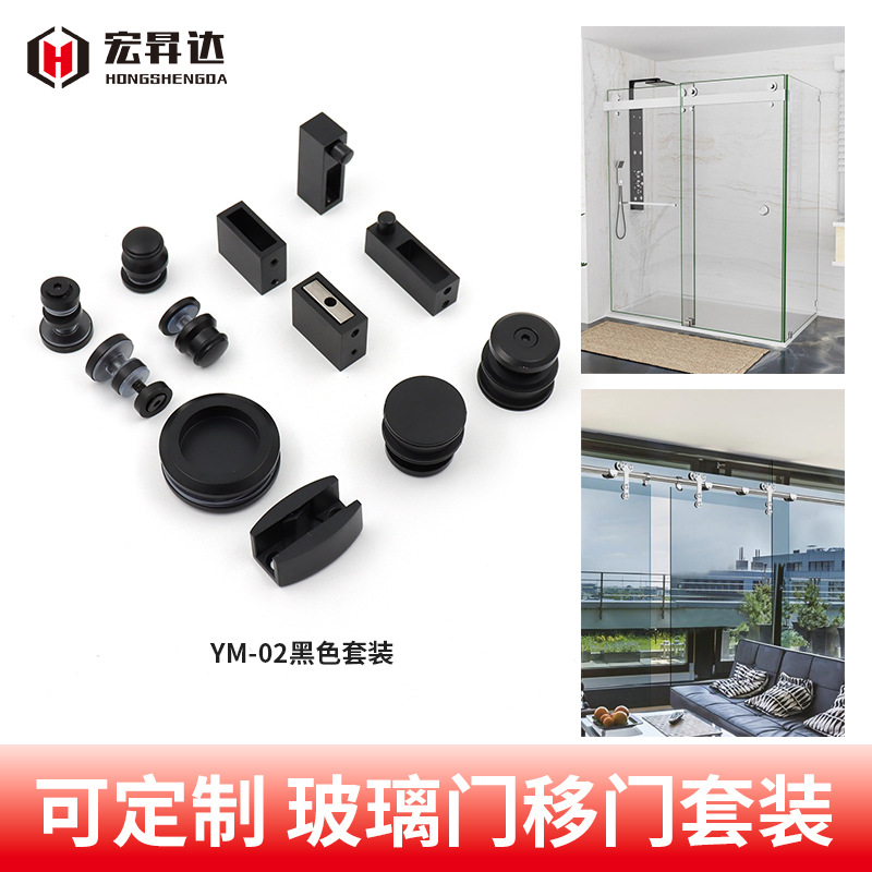 Setelan pintu kaca kamar mandi langsung pabrik 304 aksesori pintu partisi baja tahan karat penutup hitam tabung persegi pintu geser