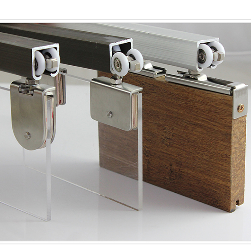 Rel gantung kamar mandi, roda bantalan pintu geser kaca kamar mandi, rel pandu kamar mandi tembaga empat arah, rel geser kamar mandi