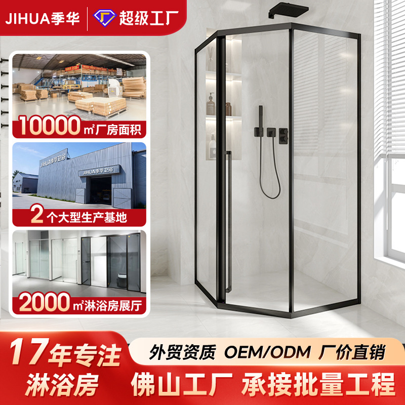Aoningjie teknik keseluruhan ruang Pancuran arc berbentuk kipas pemisah basah dan kering kaca kamar mandi kustomisasi partisi kamar mandi