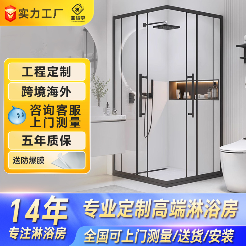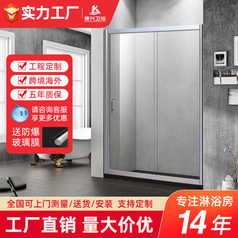 Seluruh kamar mandi kaca terjemahan kamar mandi partisi pintu geser persegi panjang kamar mandi basah dan kering pemisah layar mandi kustomisasi