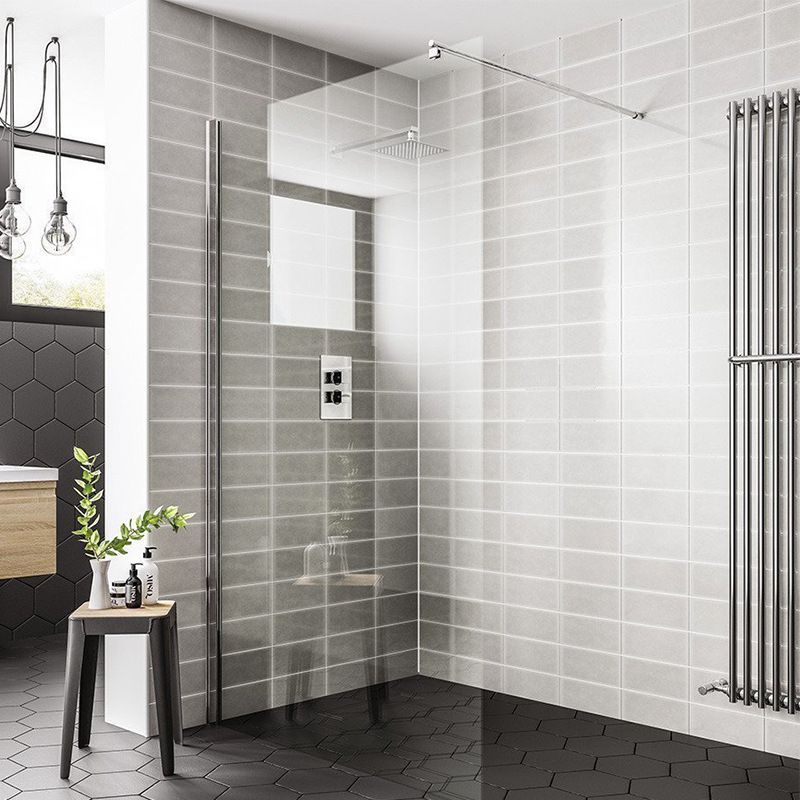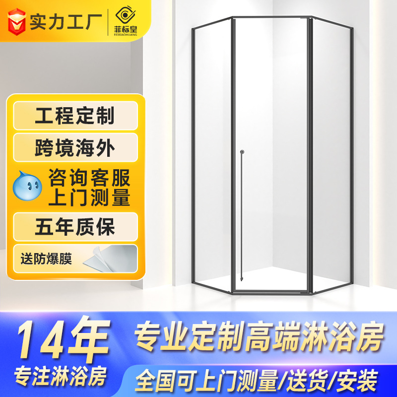 Ruang Pancuran bulat bentuk berlian minimalis Modern kaca transparan partisi pintu datar pemisah basah dan kering ruang Pancuran segi delapan