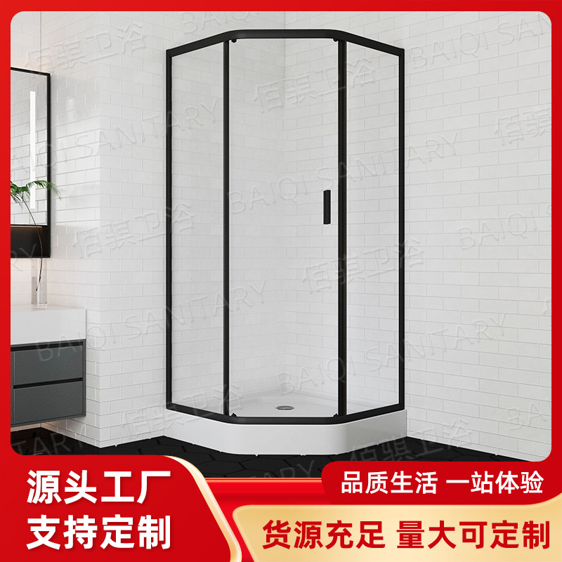 Sederhana bingkai hitam berbentuk berlian set lengkap kamar mandi ABS baki mandi partisi kaca pemisah basah dan kering kamar mandi
