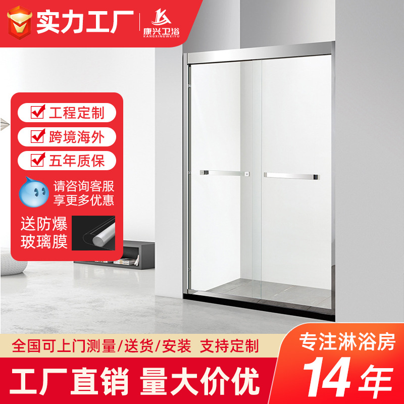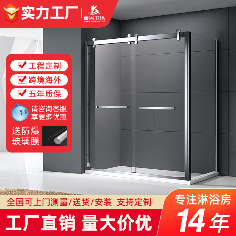Jinrangxing grosir kamar mandi keseluruhan selebriti Internet rumah tangga bingkai sempit kaca kamar mandi pintu geser ganda partisi kamar mandi