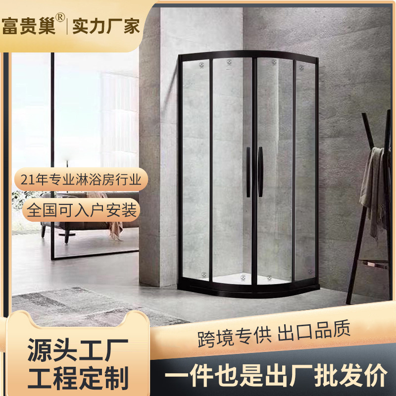 Jinrangxing arc fan pabrik grosir hotel teknik hitam kaca shower pintu stainless steel terintegrasi kamar mandi