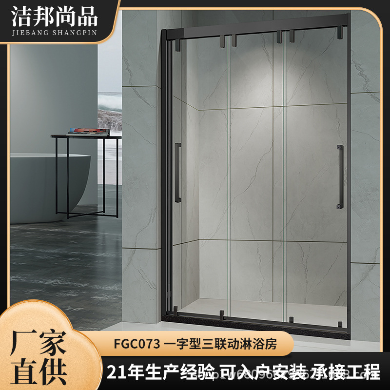 Pintu geser tiga terintegrasi kamar mandi layar satu baris partisi kaca kamar mandi pemisah basah dan kering ruang pancuran