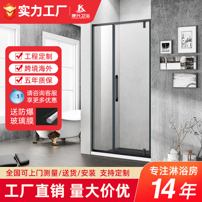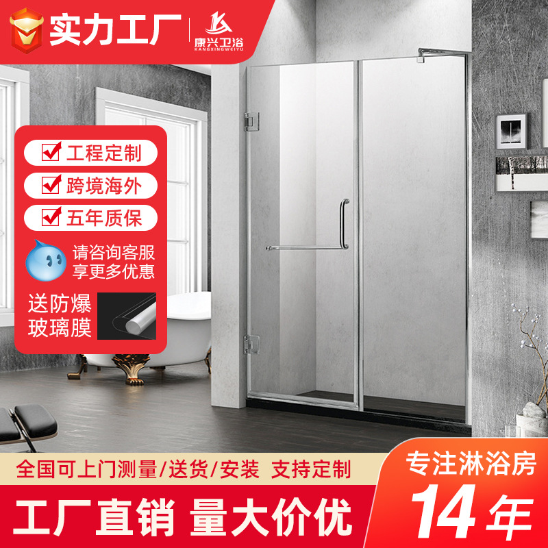 Pabrik Zhejiang kamar mandi kaca tempered satu garis, Pancuran mandi pemisah pintu kamar mandi basah dan kering