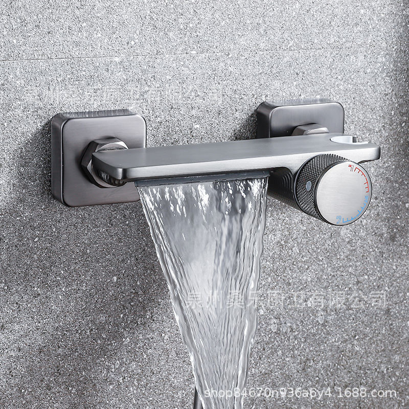 Pistol tembaga abu-abu dua gigi katup pencampur Pancuran Air Terjun keran outlet hotel sederhana cahaya mewah sederhana kecil apartemen shower