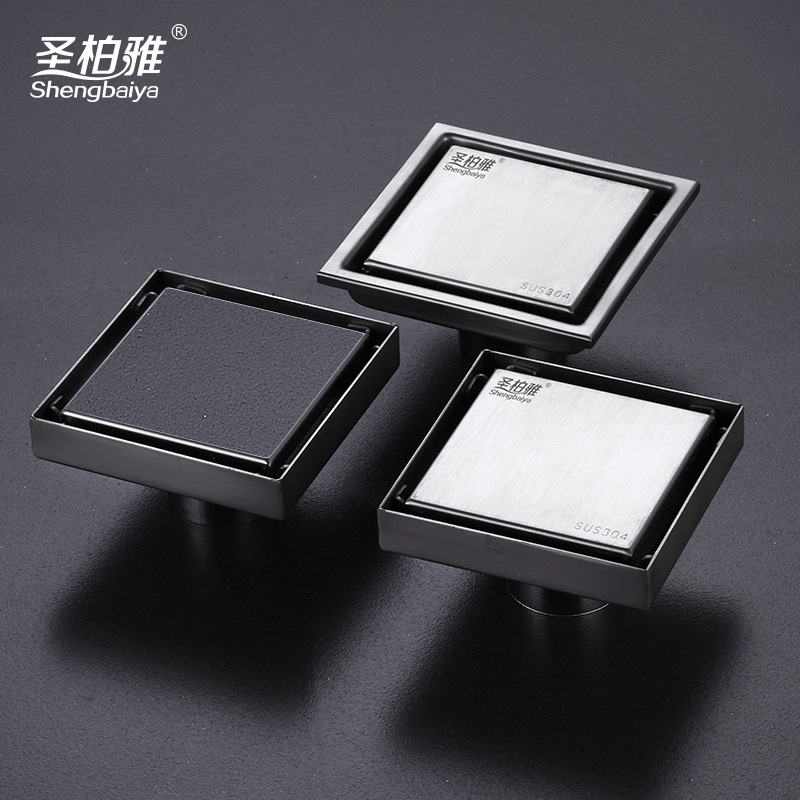 304 baja tahan karat penguras lantai tak terlihat hitam persegi kamar mandi toilet kamar mandi drainase tersembunyi lantai deodoran