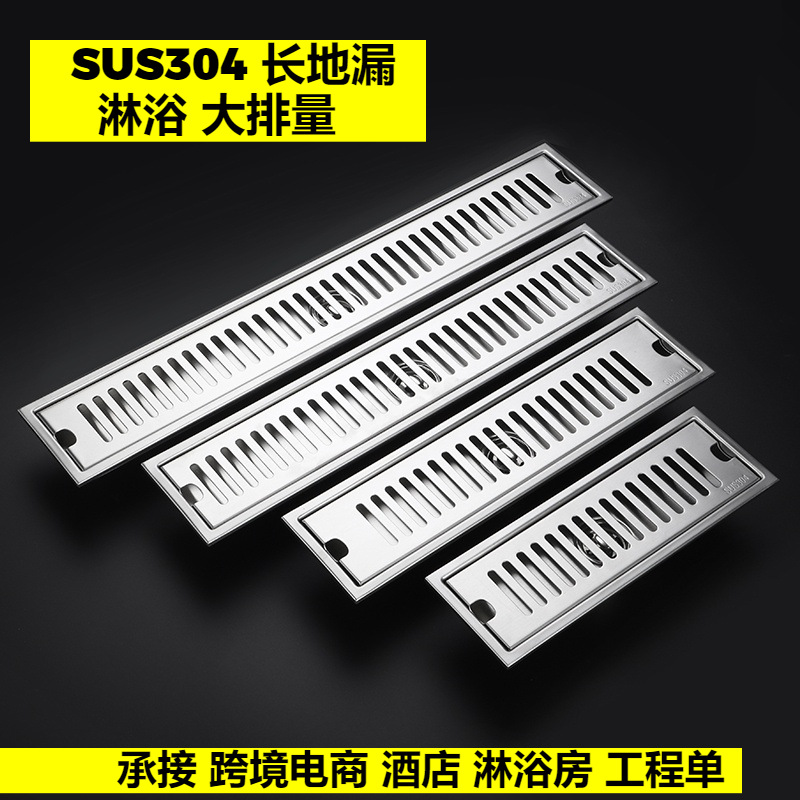 Saluran air lantai panjang, strip persegi panjang teknik ruang Pancuran hotel, deodoran pergeseran besar tebal 304 baja tahan karat kamar mandi