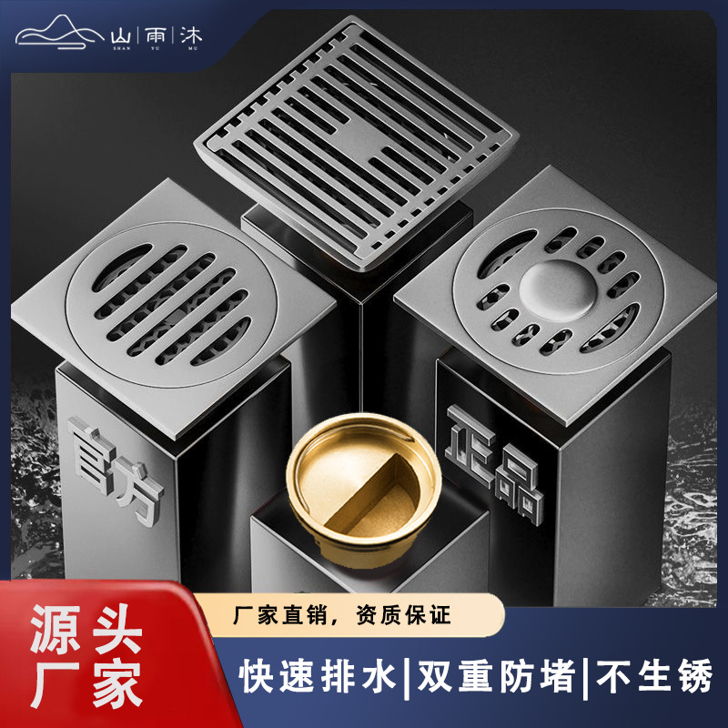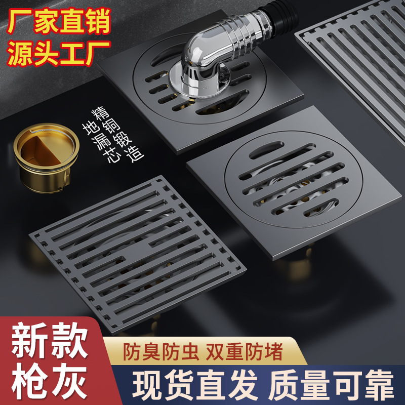 Mesin cuci 304 pistol abu-abu penguras lantai deodoran kamar mandi kamar mandi mesin cuci persegi dapur pemindahan besar baja antikarat saluran pembuangan lantai