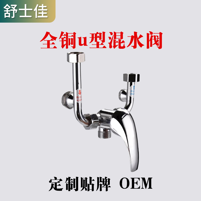 Pemanas air listrik tembaga katup pencampur sakelar terbuka katup pencampur panas dan dingin berbentuk U kepala pancuran keran tebal