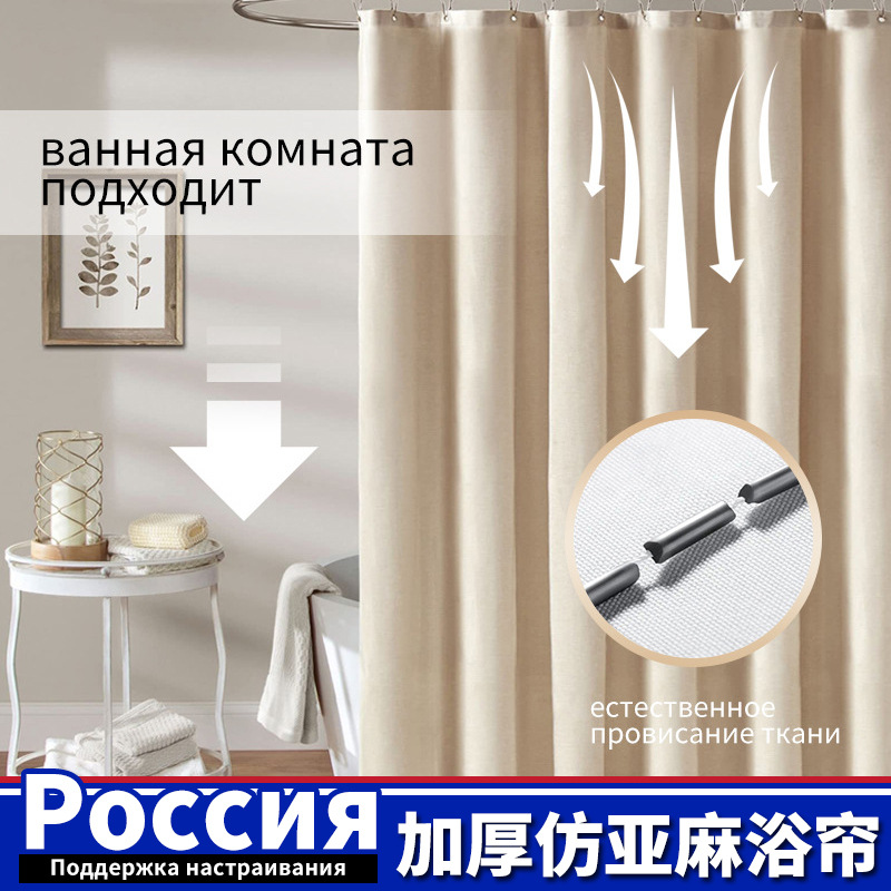 Sumber Pabrik Amazon Rusia Tirai Mandi Linen Imitasi Tirai Mandi Kamar Mandi Tebal Tirai Tahan Air Tirai Pemisah Tirai Kamar Mandi