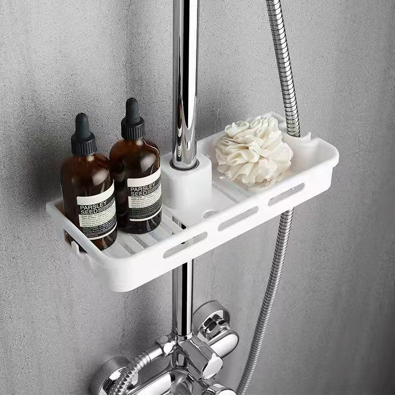 卫生间淋浴花洒置物架免打孔收纳托盘带钩支架花洒杆浴室可调节