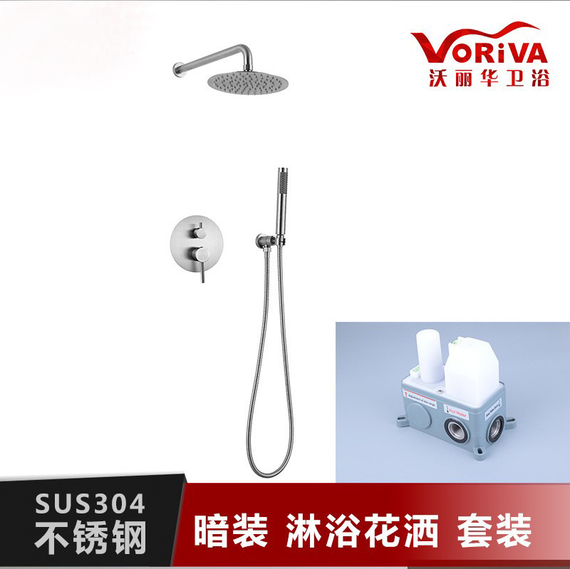 Set shower head besar untuk kamar mandi, tersembunyi di dalam kotak, berbahan stainless steel SUS304 dengan permukaan brushed, buatan pabrik.