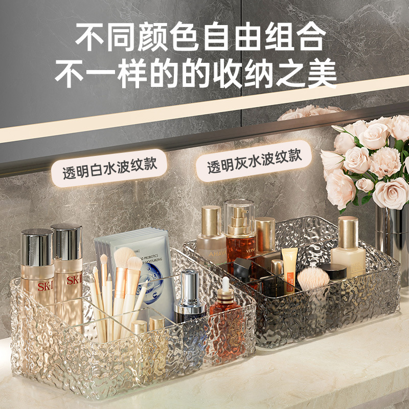 Kotak penyimpanan bergaris terbuka pola gletser besar kotak penyimpanan enam-kisi kotak pengatur kosmetik desktop kotak penyimpanan kamar mandi