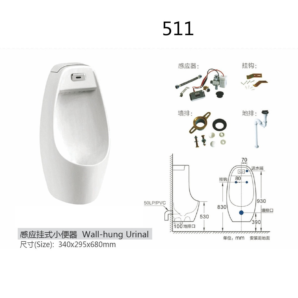Pasokan langsung pabrik urinal induksi induksi urin otomatis induksi urinal 519 toilet umum urinal