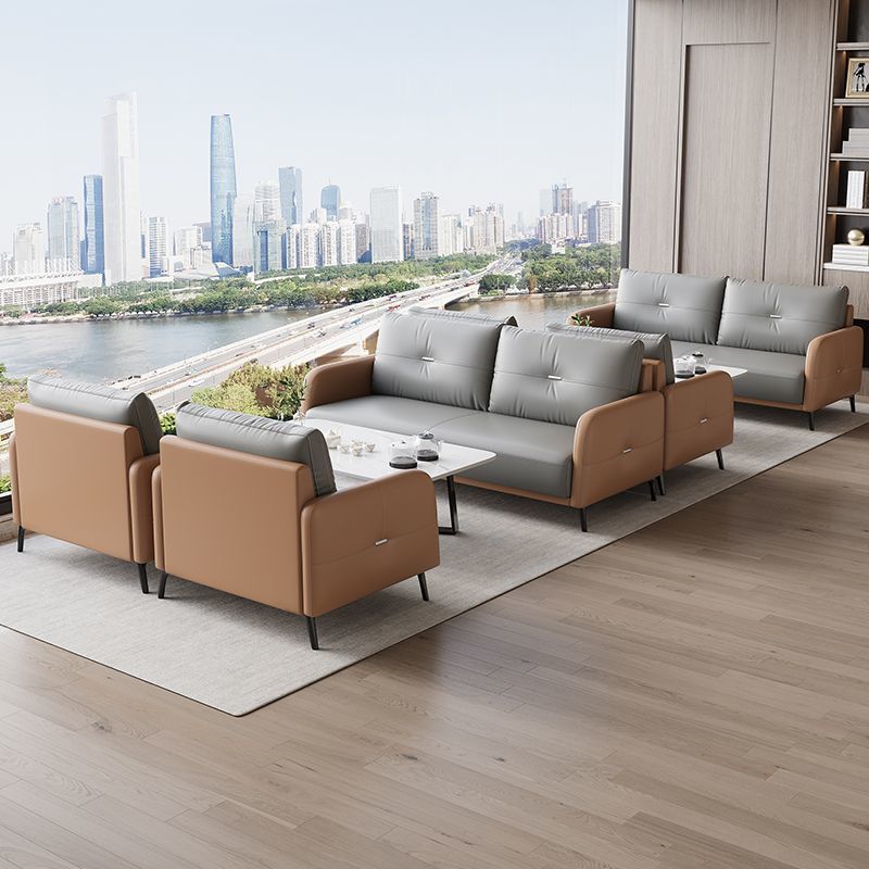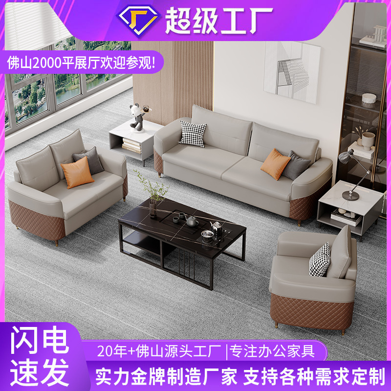 Sofa Kantor Bisnis Sederhana Meja Penerimaan Kantor Penjualan Kulit Asli Bernegosiasi Istirahat Sofa Pertemuan Tiga Orang Kombinasi Meja Kopi
