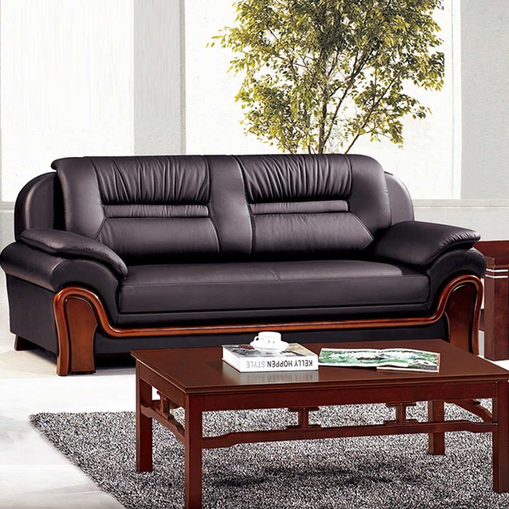 Sofa Kantor Set Meja Kopi Sofa Kulit Asli Tiga Orang Kantor Tempat Duduk Penerimaan Tamu Sederhana Bisnis