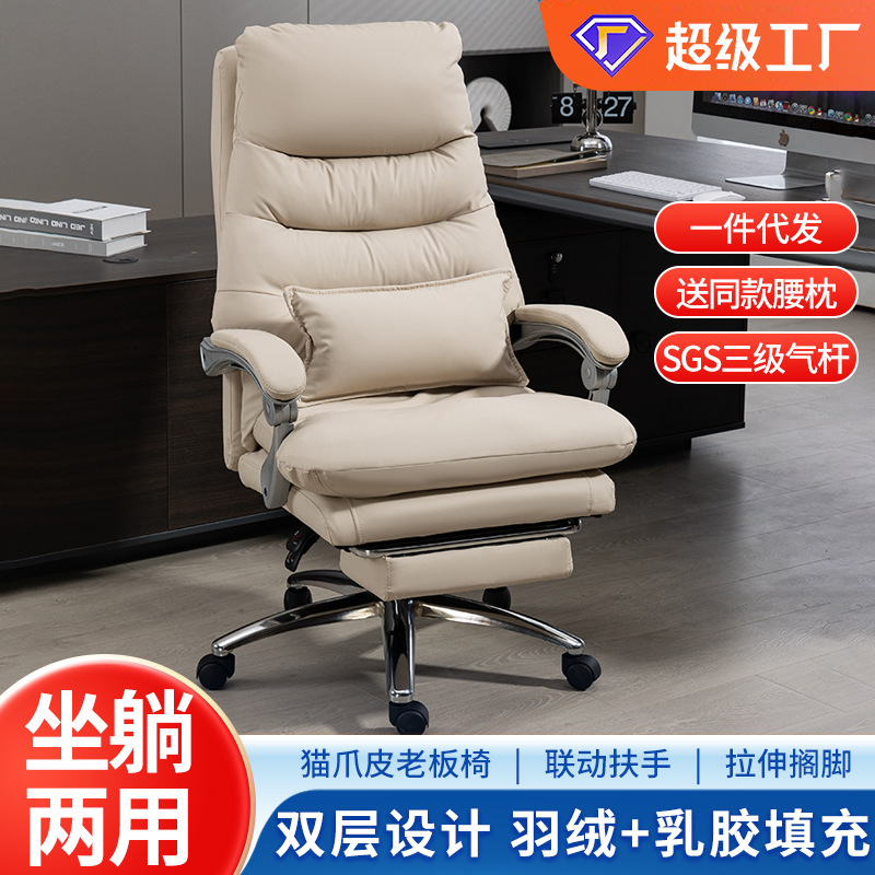 Kursi cakar kucing kulit bos bisnis, Nyaman Kursi Kantor dudukan tahan aus Panjang mengangkat kursi komputer belajar kursi putar