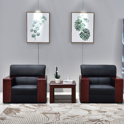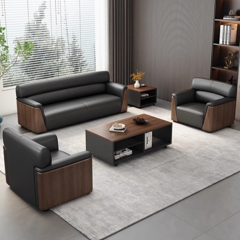 Sofa Kantor Kombinasi Meja Kopi Sederhana Penerimaan Tamu Bisnis Sofa Tiga Orang Kantor Seni Kulit Kecil