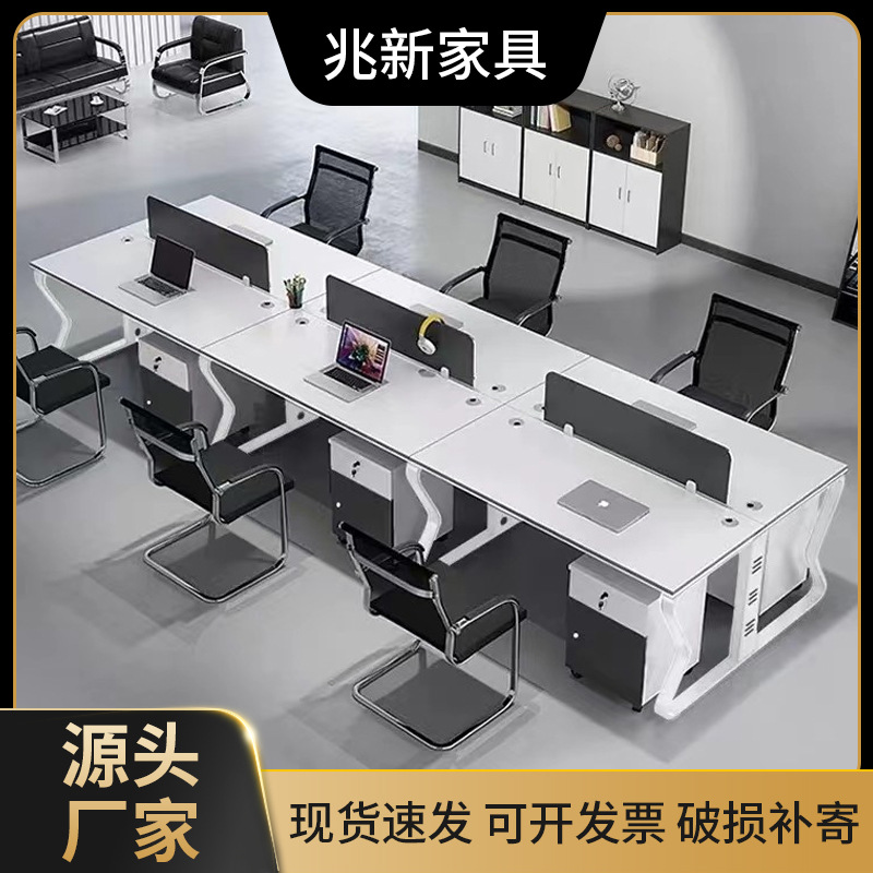 Meja sederhana 6 orang staf meja komputer kantor, meja kantor dan kursi kombinasi 4-orang meja partisi piring