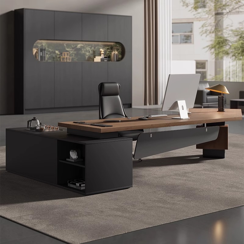Meja Kerja Kayu Solid Sederhana dan Modern High-end dengan Meja Teh Satu Tubuh Meja Bos Kelas Besar Mewah Ringan dan Kelas Tinggi