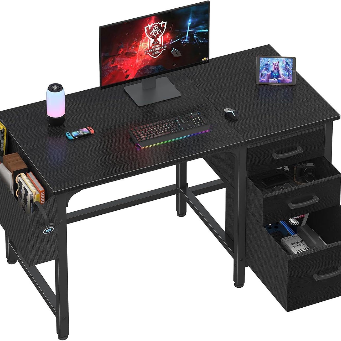 Meja Komputer Modern Sederhana Tipe Kantor Meja Komputer Struktur Kayu Besi Dengan Lampu Suasana Dapat Disesuaikan
