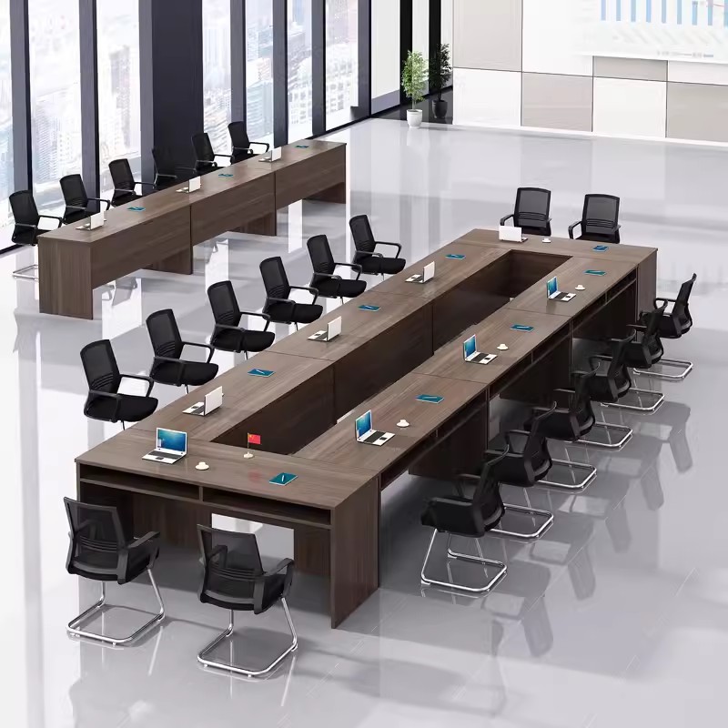 Meja Pelatihan Sederhana Kombinasi Meja Meja Meja Panjang Meja Panjang Oval Skala Besar Cat Kulit Kayu Banyak Orang Kombinasi Panel Rapat
