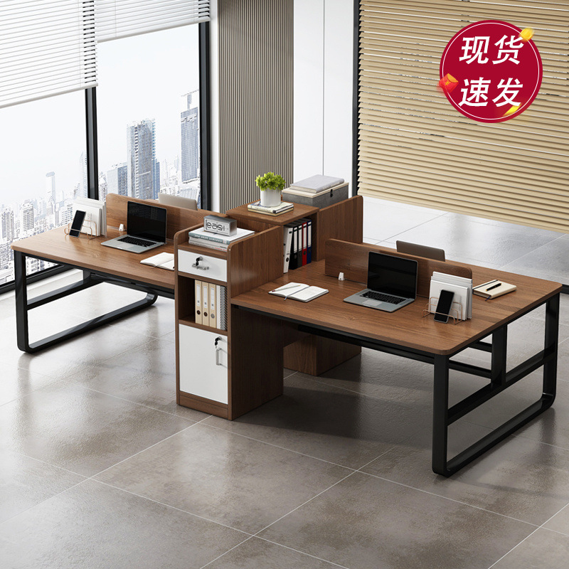 Meja staf meja kerja sederhana dua/empat orang meja dan kursi kantor modern sederhana dengan warna kayu