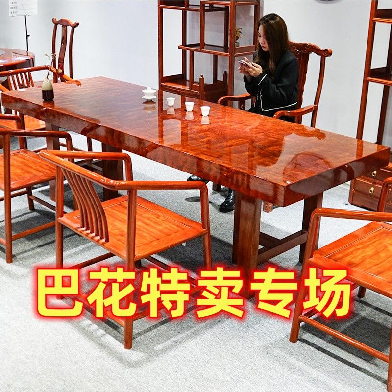 ♡Bahua Kayu Solid Papan Besar Kayu Asli Kayu Merah Meja Kantor Kayu Afrika Meja Kerja Bergelombang Teh Kerja