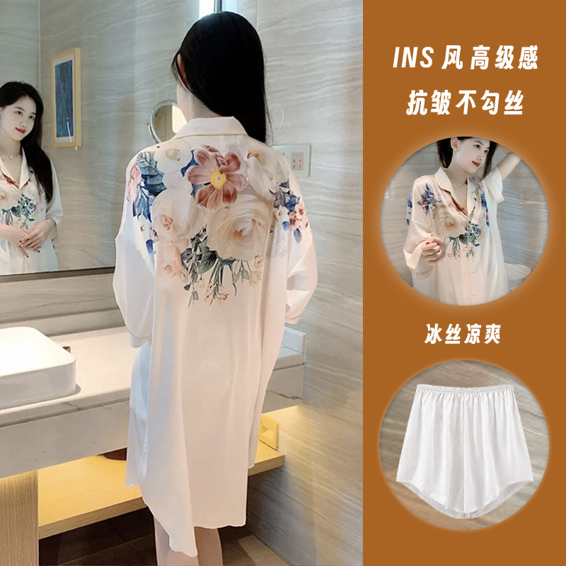 Piyama selebriti online populer wanita musim panas kelas atas lengan pendek celana pendek kardigan es sutra muda kemeja baju tidur setelan pakaian rumah
