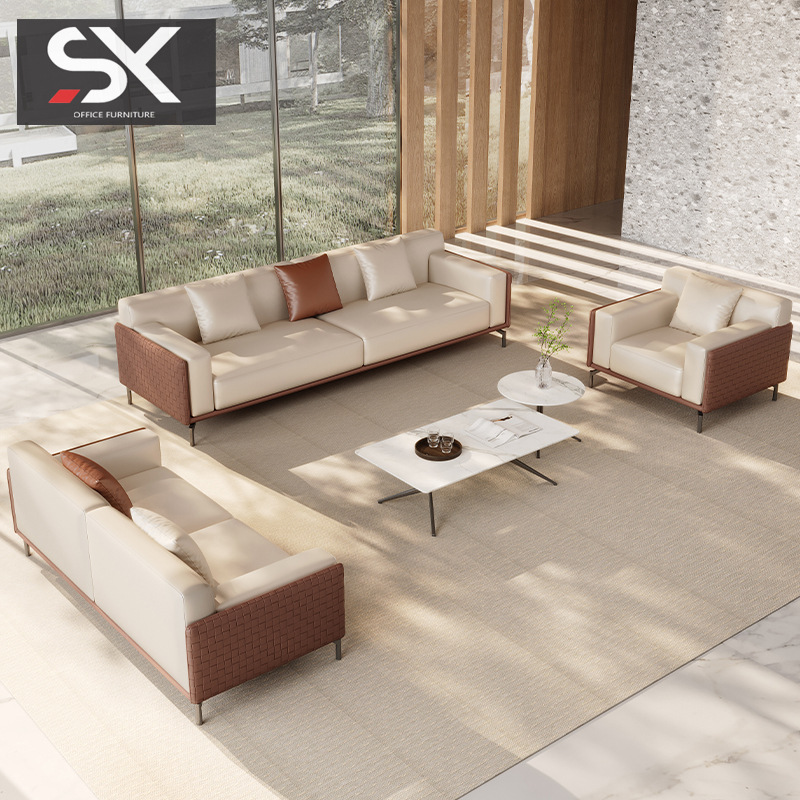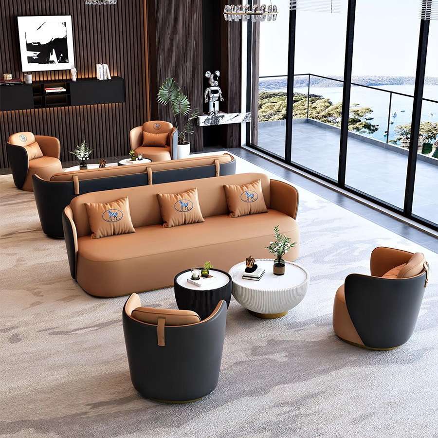 Sofa Kantor Mewah Ringan Tempat Duduk Bisnis Kulit Asli Set Set Meja Kopi Sofa Ruang Pertemuan Penerimaan VIP