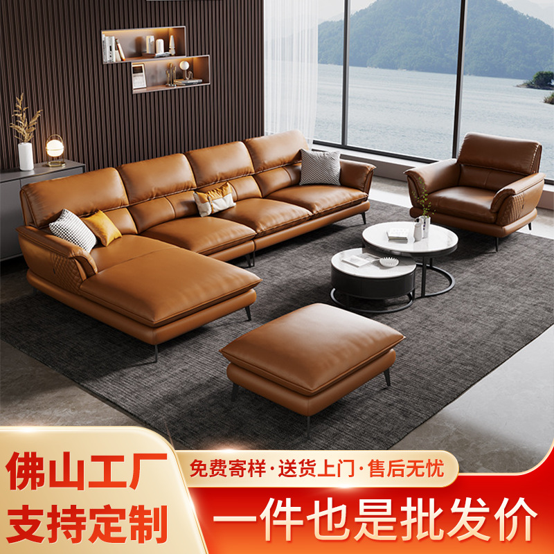 Sofa Kulit Asli Modis Sederhana Retro Kombinasi Ruang Tamu Bisnis Set Sofa Kulit Asli Rumah Tangga Mewah Ringan Modern