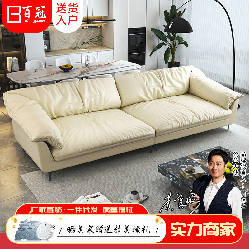 Set Kombinasi Sofa Kulit Asli Modern Sederhana Ruang Tamu Penyimpanan Multifungsi Sofa Seni Kulit Ukuran Besar dan Kecil Model Baru