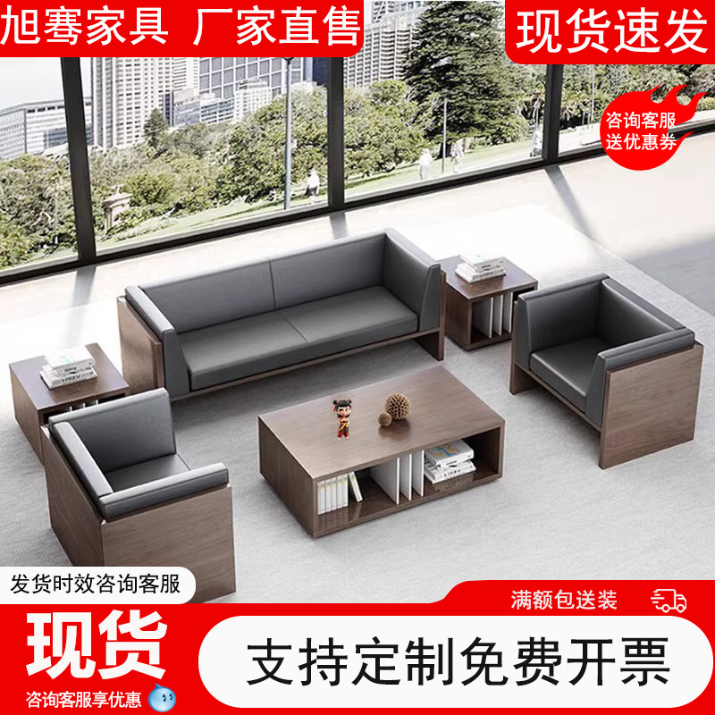 Sofa Kantor Kombinasi Meja Kopi Sederhana Ruang Bos Kantor Kepala Kantor Penerimaan Meja Depan Sofa Bisnis Kulit Asli