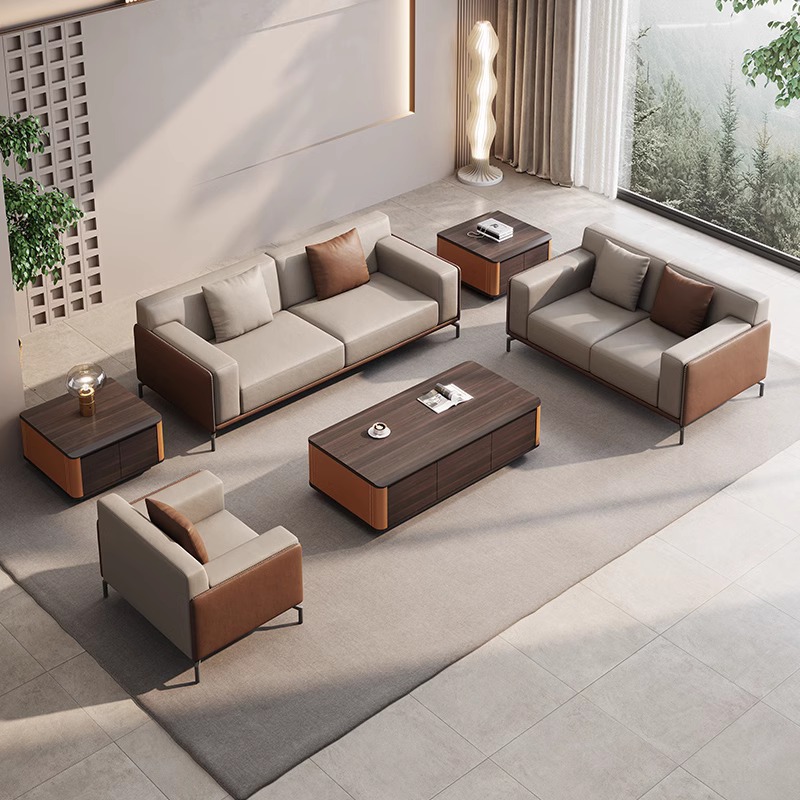 Sofa Kantor Minimalis Modern Resepsionis Bisnis Tamu Negosiasi 4s Sofa Kantor Kulit Sapi Kombinasi Meja Kopi