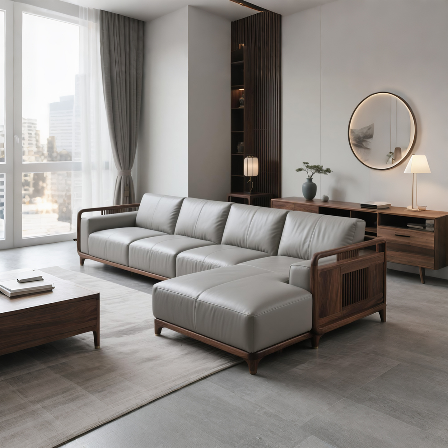 Gaya Tiongkok Baru Amerika Utara Kenari Hitam Sofa Kayu Solid Modern Mewah Ringan Sudut Sofa Ruang Tamu Ruang Kantor