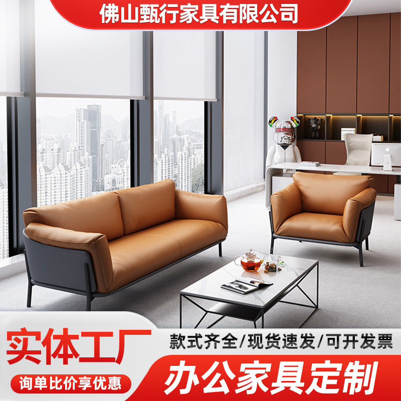 Set Set Kombinasi Meja Kopi Sofa Kantor Bisnis Sederhana dan Modern Ruang Penerimaan Tamu Fashion Sofa Kulit Asli untuk Tiga Orang