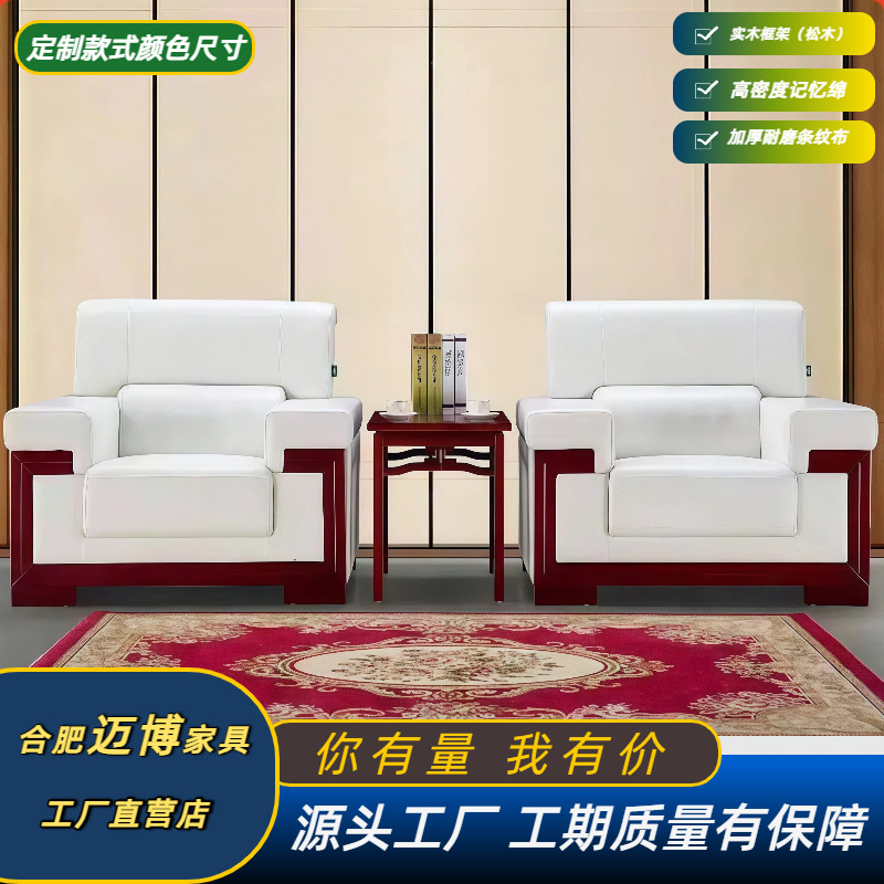 Sofa Kantor Penyamaran Kayu Solid Ruang Pertemuan Bank Meja Kopi Kombinasi Tempat Duduk Bisnis Seni Kulit Modern Sederhana