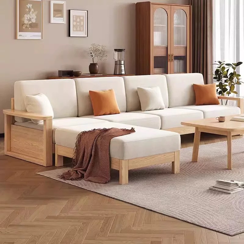 Sofa Kayu Solid Semua Kayu Asli Kombinasi Kayu Putih Nordik Musim Dingin Musim Panas Penggunaan Ganda Baris lurus Ruang Tamu Perabot Penyimpanan Unit Kecil