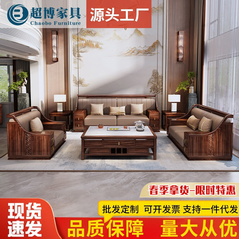 Sofa Kayu Solid Kayu Wujin Sofa Kulit Kelas Atas Ruang Tamu Villa Gaya Tiongkok Baru Sofa Penyimpanan Tipe Besar untuk Musim Dingin dan Musim Panas
