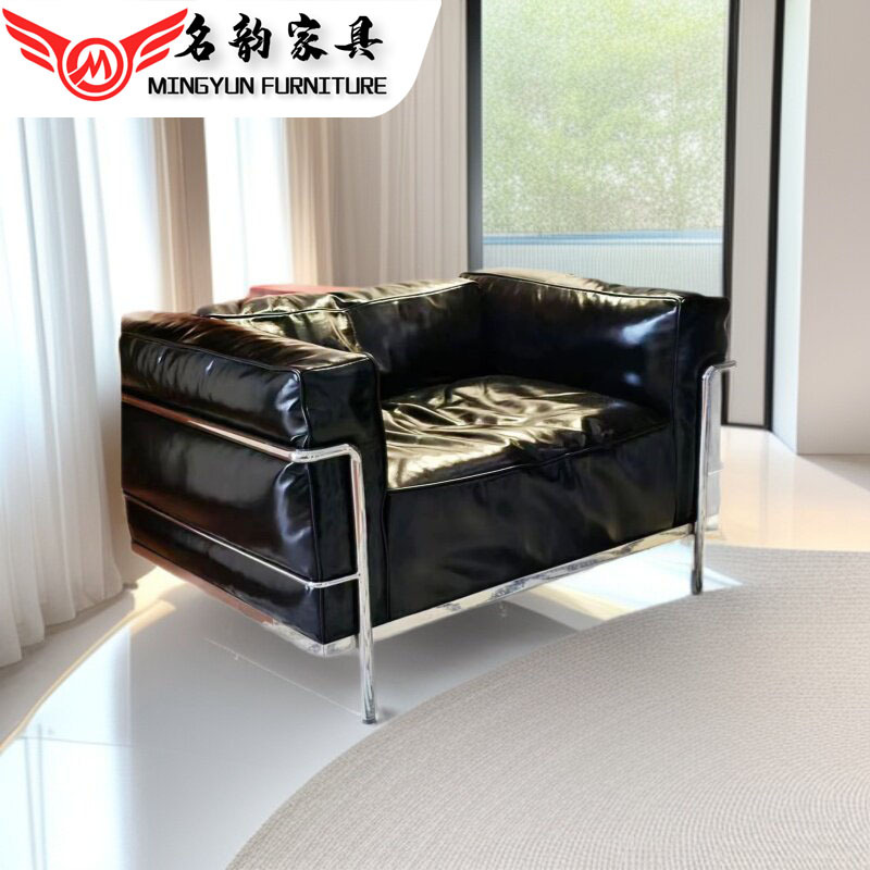 Sofa Bisnis Sederhana Kantor Klasik Corbusier Ruang Penerimaan Hitam Area Tempat Duduk Tamu LC2 Sofa Kulit