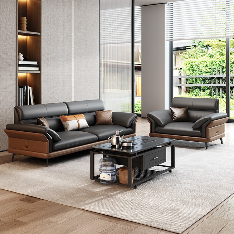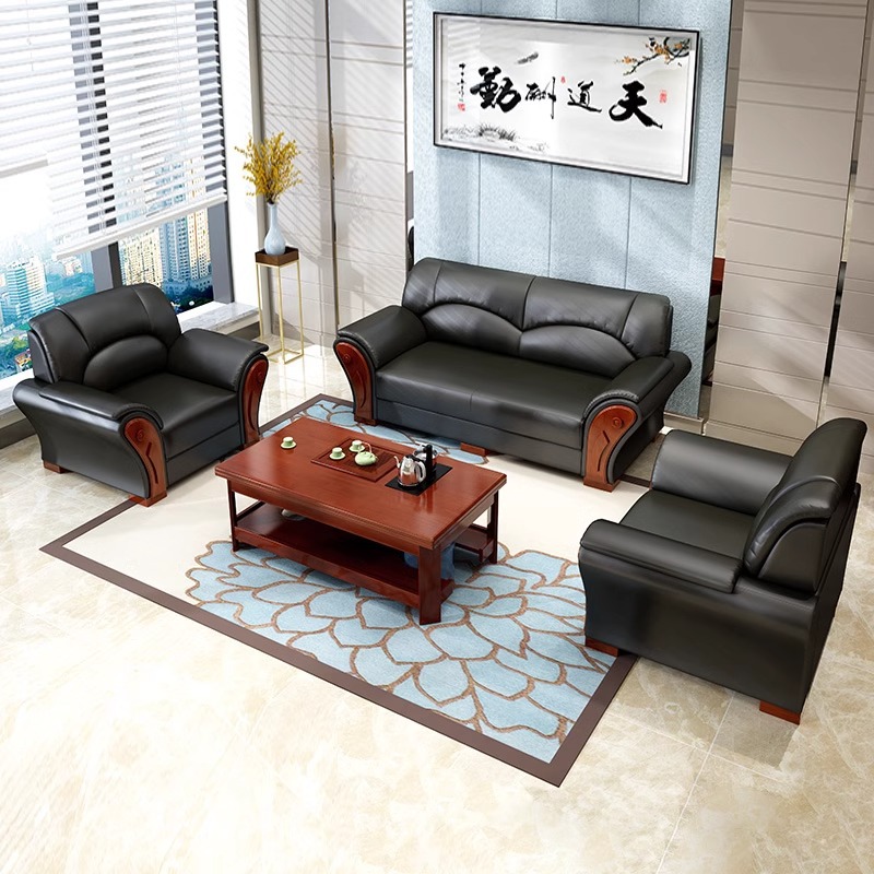 Pertemuan bisnis gaya Cina baru negosiasi sofa kantor gaya Tiongkok boss kulit sofa meja teh kombinasi
