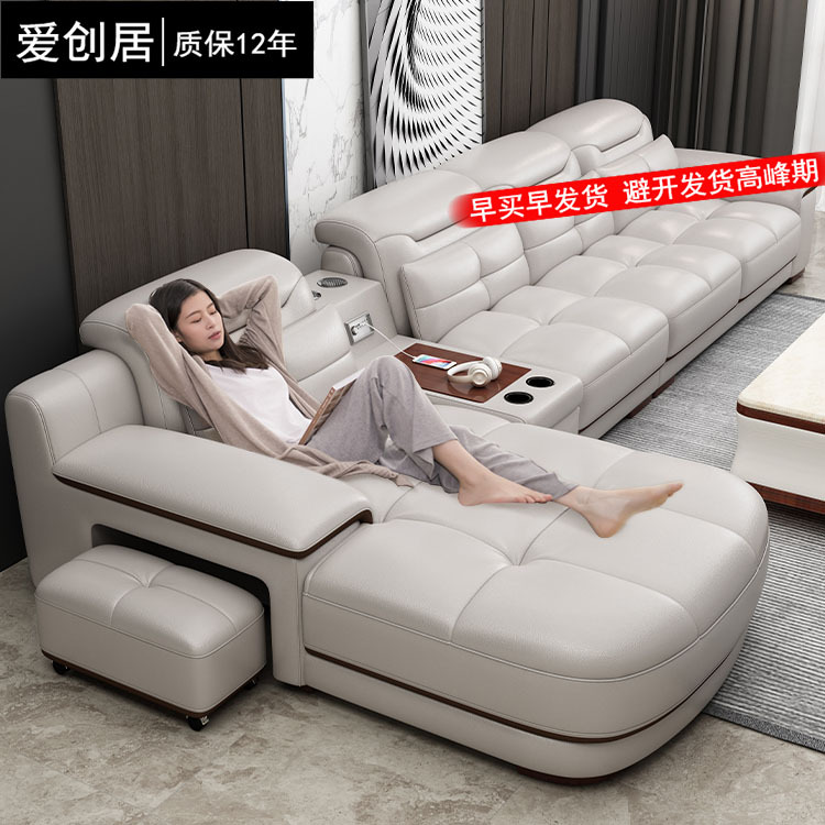 Sofa Kulit Asli Sofa Samping Sudut Duduk Selir Ruang Tamu Gaya Italia Apartemen Ukuran Besar dan Kecil Modern Sederhana Lurus Sofa Kulit Sapi Lapisan Kepala