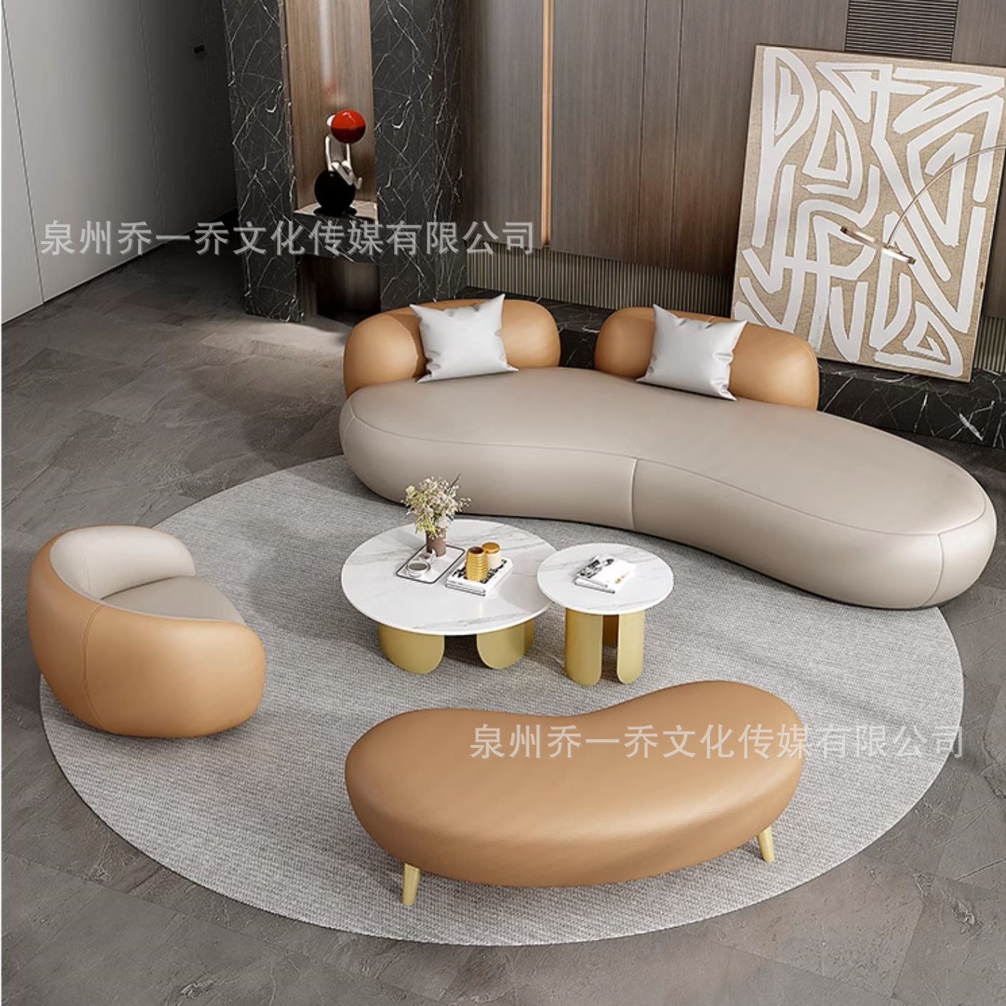 Sofa gaya Italia, Ruang Tamu lapisan pertama sofa kulit kombinasi klub kreatif sofa santai kantor melengkung grosir