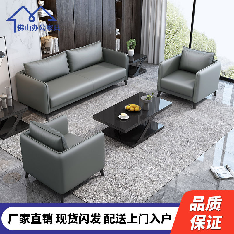 Sofa Kantor Set Meja Kopi Kulit Asli Sofa Bisnis Sederhana Modern Area Pertemuan Sofa Kantor Tiga Orang
