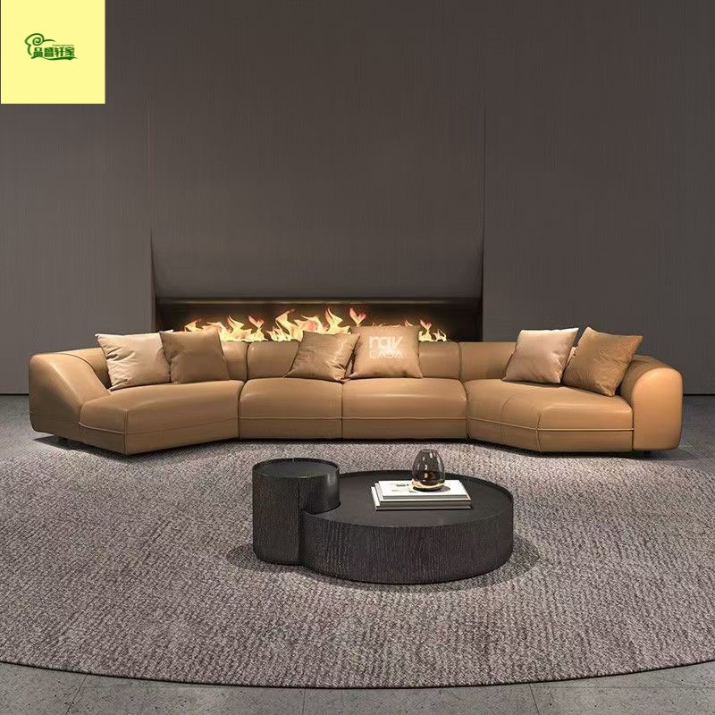 Sofa retro Italia lapisan pertama kulit sapi ruang tamu sofa kuno setengah sofa desainer berbentuk khusus pabrik mebel Foshan