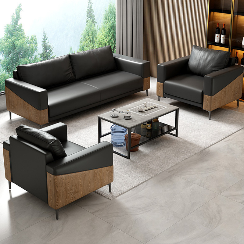 Sofa kulit kantor, setelan kombinasi meja kopi, sofa tiga kursi, ruang resepsi modern, sederhana